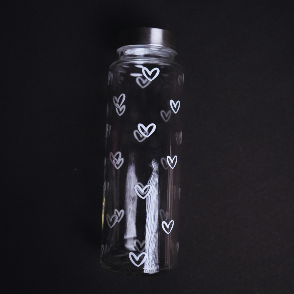 π€ White Heart Glass Bottle β 500ml (Steel Cap, 365g)